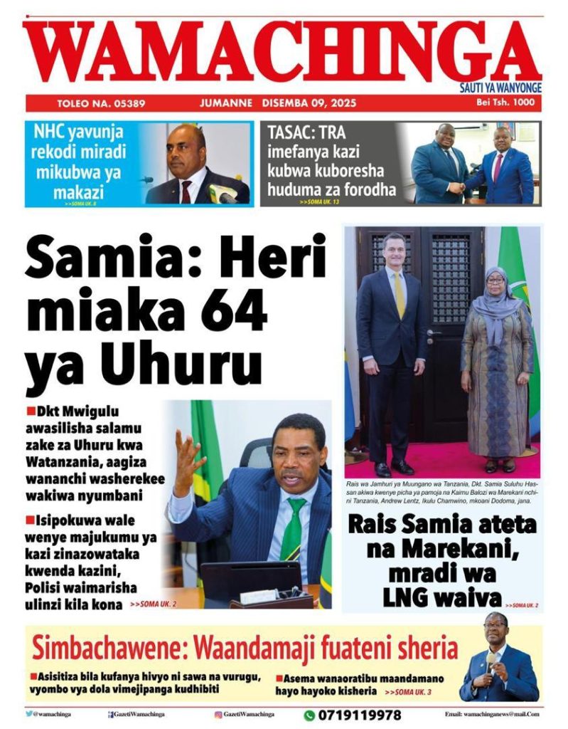 MagazetiPITIA VICHWA VYA HABARI KATIKA MAGAZETI YA LEO DESEMBA 9, 2025 Last updated: 2025/12/08 at 10:21 PM John Bukuku 5 months ago Share SHARE John Bukuku December 8, 2025 December 8, 2025 Share this Article Facebook Twitter Email Print Previous Article NAIBU WAZIRI KISUO : OSHA ELIMISHENI WAFANYABIASHARA WADOGO Next Article PITIA VICHWA VYA HABARI KATIKA MAGAZETI YA LEO DISEMBA 09, 2025