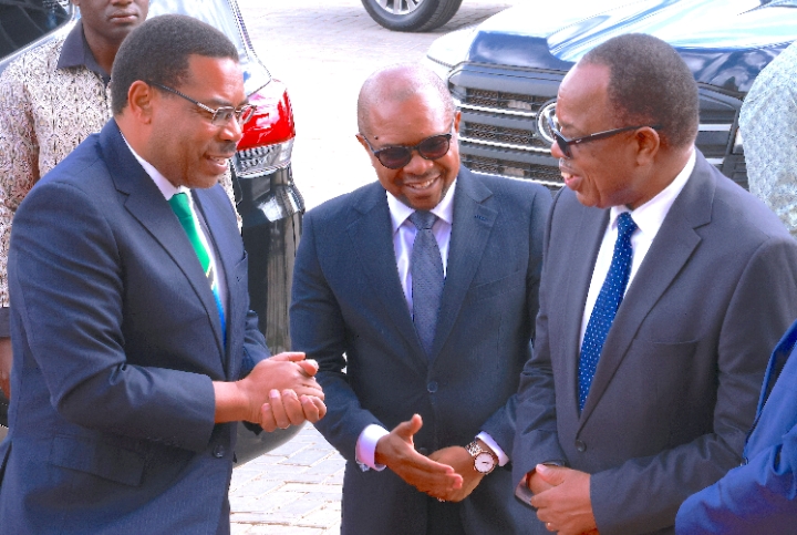 Waziri Mkuu, Dkt. Mwigulu Nchemba akisalimiana Waziri wa Nchi Ofisi ya Rais, Menejimenti ya Utumishi wa Umma na Utawala Bora, Ridhiwani Kikwete alipowasili kwenye Makao Makuu ya Sekretariati ya Maadili ya Viongozi wa Umma jijini Dodoma, Desemba 11, 2025. Kulia ni Kamishina wa Sekretarieti ya Maadili ya Viongozi wa Umma, Jaji Mstaafu, Sivangilwa Mwangesi . (Picha na Ofisi ya Waziri Mkuu)