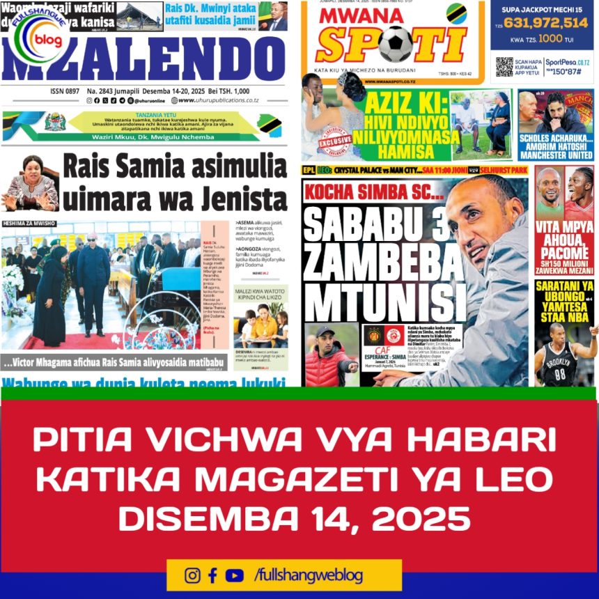 MagazetiPITIA VICHWA VYA HABARI KATIKA MAGAZETI YA LEO DISEMBA 14, 2025 Last updated: 2025/12/14 at 2:34 AM John Bukuku 6 hours ago Share SHARE John Bukuku December 14, 2025 December 13, 2025 Share this Article Facebook Twitter Email Print Previous Article KAIMU KAMISHNA WA UHIFADHI TAWA AFUNGUA KIKAO KAZI CHA MENEJIMENTI YA TAWA