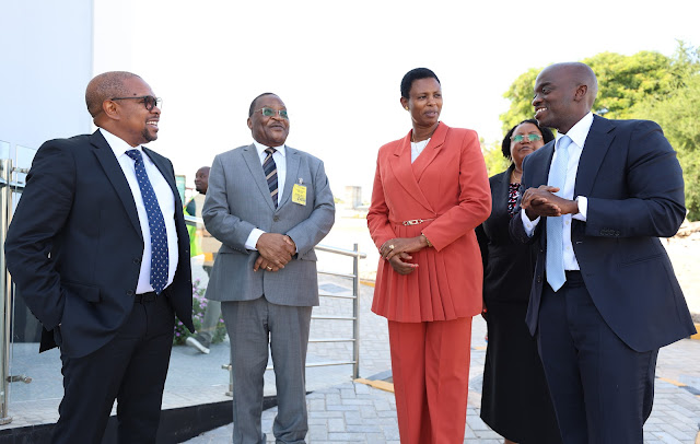 Waziri wa Nchi, Ofisi ya Rais, Menejimenti ya Utumishi wa Umma na Utawala Bora, Mhe. Ridhiwani Kikwete (wakwanza kushoto) akifurahia jambo na Mkurugenzi wa Wakala ya Ndege za Serikali (TGFA), Capt. Budodi Budodi (wakwanza kulia). Wa pili kutoka kulia ni Naibu Waziri, Ofisi ya Rais-UTUMISHI na Utawala Bora, Mhe. Regina Qwaray na wa pili kutoka kushoto ni Mwenyekiti wa Bodi ya Ushauri ya Wakala wa Ndege za Serikali, Prof. Mhandisi Idrissa Mshoro.
