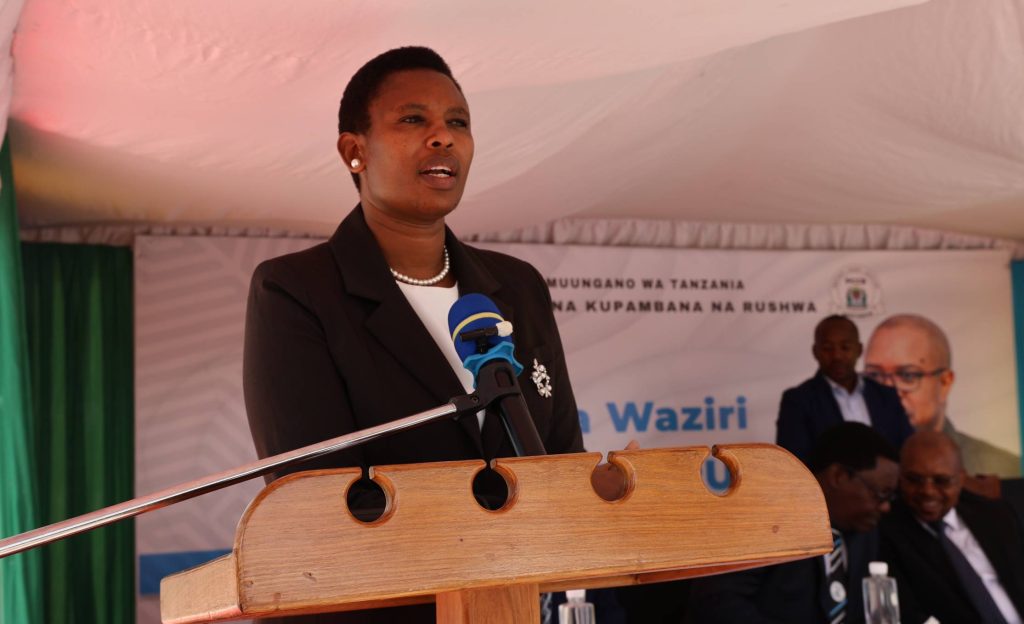 Naibu Waziri, Ofisi ya Rais, Menejimenti ya Utumishi wa Umma na Utawala Bora, Mhe. Regina Qwaray akizungumza maneno ya awali kabla ya kumkaribisha Waziri wa Nchi, Ofisi ya Rais-UTUMISHI na Utawala Bora, Mhe. Ridhiwani Kikwete kuzungumza na Viongozi na Watumishi wa Taasisi ya Kuzuia na Kupambana na Rushwa (TAKUKURU) wakati wa ziara ya kikazi iliyofanyika jijini Dodoma.
