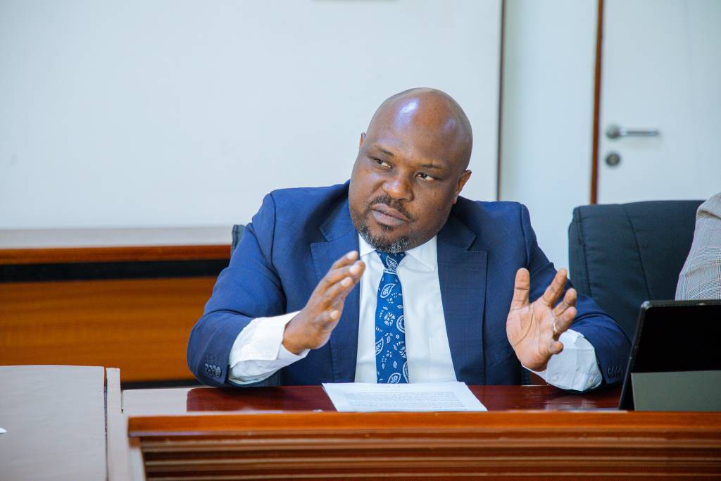 Kamishna wa Kitengo cha Kudhibiti Fedha Haramu – FIU, Bw. Majaba Magana, akieleza kuhusu majukumu yanayotekelezwa na Kitengo cha FIU, katika kikao kazi na Waziri wa Fedha, Mhe. Balozi Khamis Mussa Omar (Mb), kilichofanyika katika ukumbi wa mikutano wa Waziri wa Fedha, Treasury Square, jijini Dodoma.