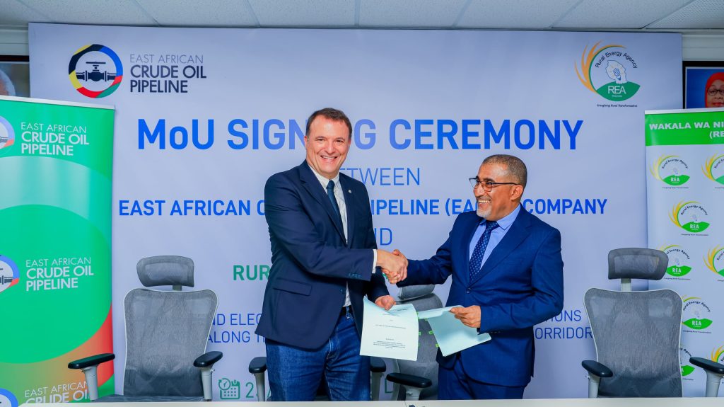 Wakala wa Nishati Vijijini (REA) pamoja na Mradi wa Bomba la Mafuta Ghafi la Afrika Mashariki (EACOP) zimeingia makubaliano yaliyolenga kufikisha umeme katika vitongoji na jamii ambazo zimepitiwa na bomba hilo la mafuta kwa upande wa Tanzania.