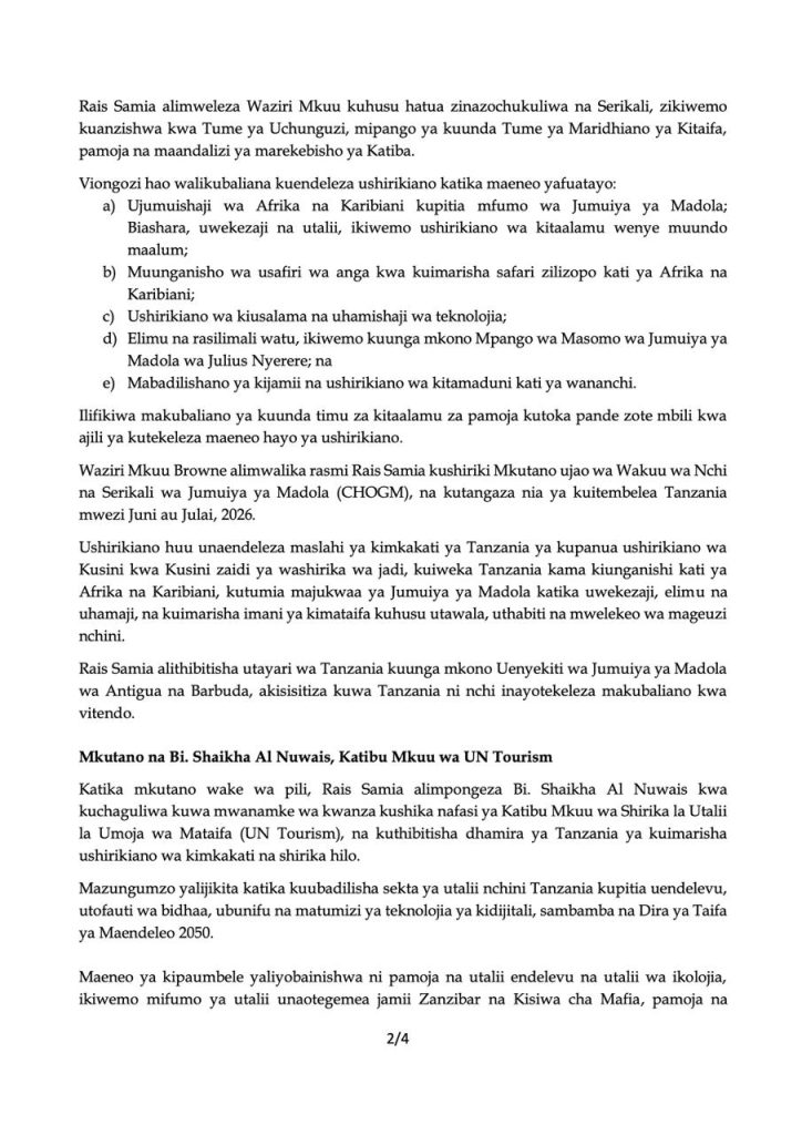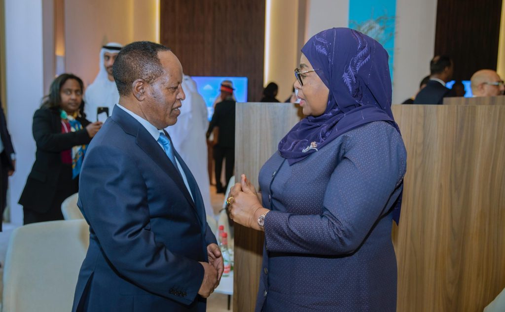 Rais wa Jamhuri ya Muungano wa Tanzania, Mhe. Dkt. Samia Suluhu Hassan akiteta jambo na Rais wa Ethiopia, Mhe. Aye Atske-Selassie, kabla ya kufanya vikao na Viongozi mbalimbali pembezoni mwa mkutano wa Jukwaa la Serikali za Dunia (WGS2026), tarehe 3 Februari, 2026, Madinat Jumeirah, Dubai, Umoja wa Falme za Kiarabu (UAE).