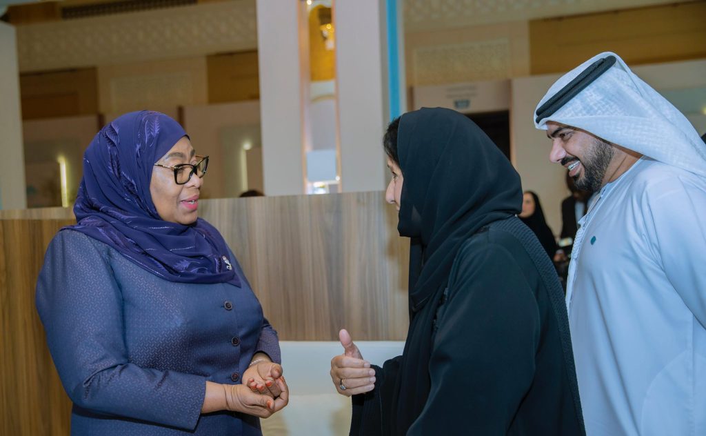 Rais wa Jamhuri ya Muungano wa Tanzania, Mhe. Dkt. Samia Suluhu Hassan akisalimiana na Waziri wa Nchi Umoja wa Falme za Kiarabu, Mhe. Dkt. Maitha Salem Al Shamsi muda mfupi kabla ya kufanya vikao na Viongozi mbalimbali pembezoni mwa mkutano wa Jukwaa la Serikali za Dunia (WGS2026), tarehe 3 Februari, 2026, Madinat Jumeirah, Dubai, Umoja wa Falme za Kiarabu (UAE).