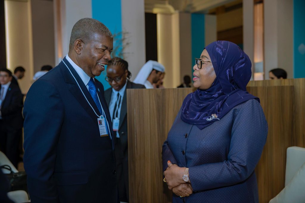 Rais wa Jamhuri ya Muungano wa Tanzania, Mhe. Dkt. Samia Suluhu Hassan akisalimiana na Rais wa Jamhuri ya Angola, Mhe. João Lourenço, kabla ya kufanya vikao na Viongozi mbalimbali pembezoni mwa mkutano wa Jukwaa la Serikali za Dunia (WGS2026), tarehe 3 Februari, 2026, Madinat Jumeirah, Dubai, Umoja wa Falme za Kiarabu (UAE).