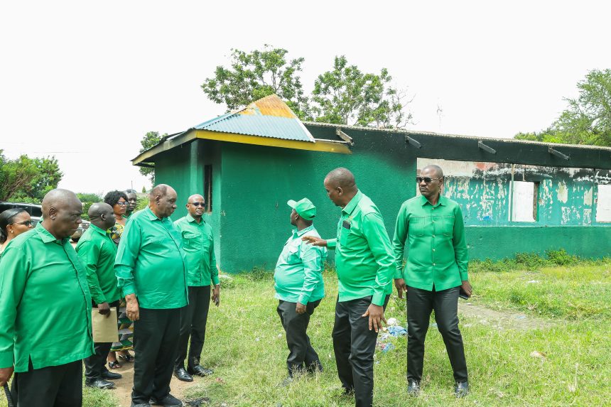 Makamu Mwenyekiti wa CCM Bara akikagua athari za uharibifu wa Ofisi ya CCM Wilaya Bunda leo februari 05 akita wilayani humo kwa ajili ya Maazimisho ya Cherche za Miaka 49 ya Kuzaliwa kwa CCM.