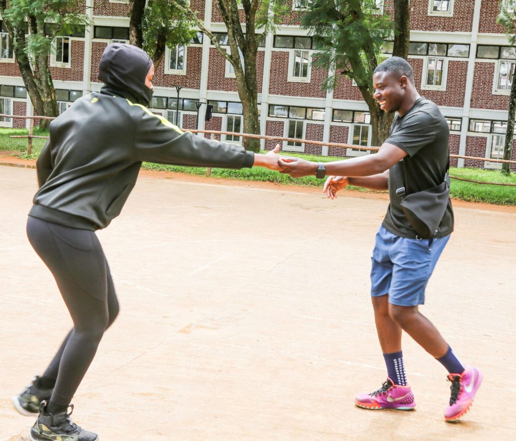 Kocha wa Mpira wa Pete (Netball) ya Ofisi ya Makamu wa Rais, Bw. Mafuru Buriro akifanya mazoezi na mmoja wa wachezaji wa timu hiyo Aprili 15, 2026 kwa ajili ya maandalizi ya mashindano ya michezo ya mei mosi ikiwa ni shamrashamra ya Maadhimisho ya Sikukuu ya Wafanyakazi Duniani Mei Mosi, 2026 yanayotarajia kufanyika Kitaifa Mkoani Njombe.