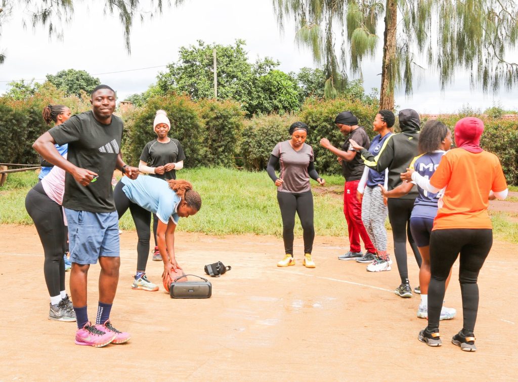 Wachezaji wa Mpira wa Pete (Netball) ya Ofisi ya Makamu wa Rais wakifanya ya pamoja ya timu hiyo Aprili 15, 2026 kujiandaa na mashindano ya Mei Mosi ikiwa ni shamrashamra ya Maadhimisho ya Sikukuu ya Wafanyakazi Duniani Mei Mosi, 2026 yanayotarajia kufanyika Kitaifa Mkoani Njombe.