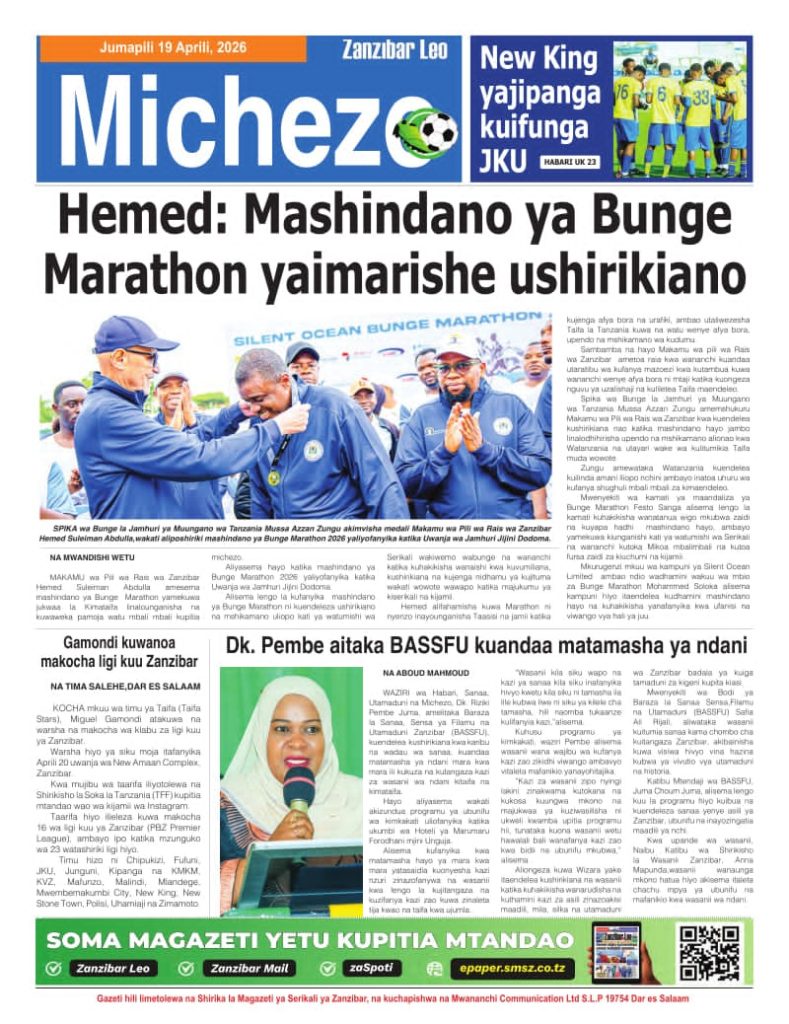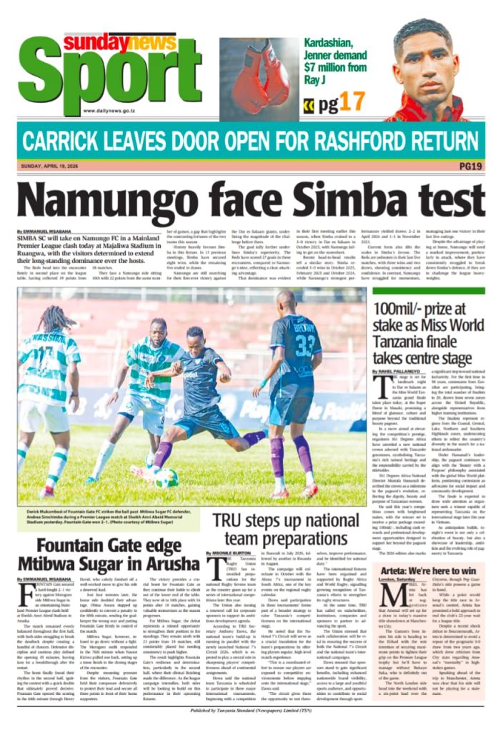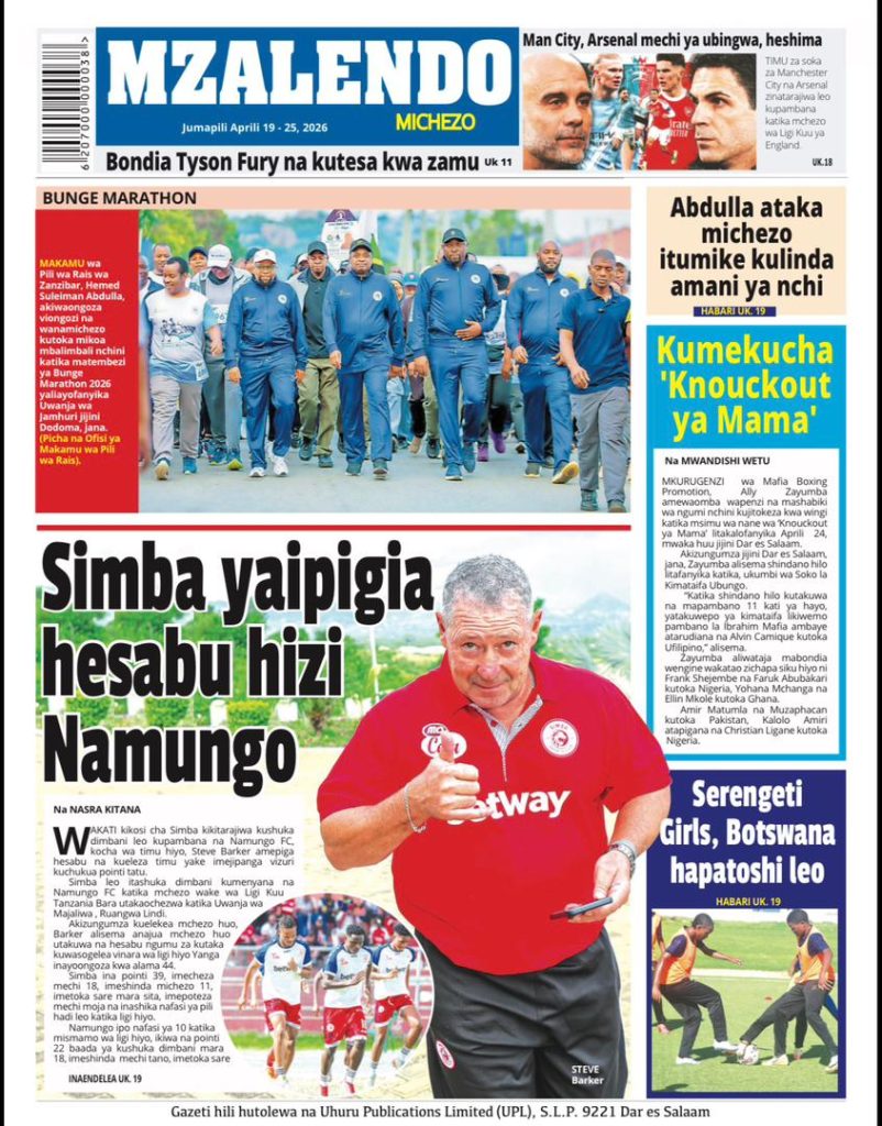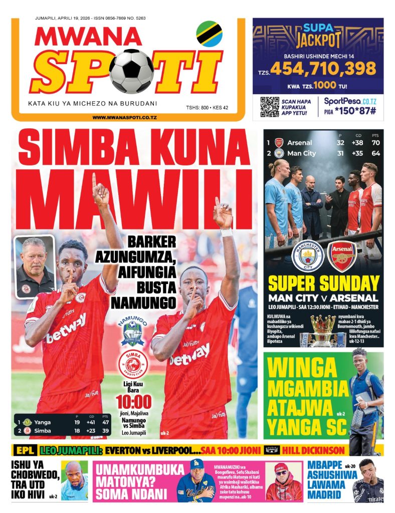 MagazetiPITIA VICHWA VYA HABARI KATIKA MAGAZETI YA LEO APRILI 19, 2026 Last updated: 2026/04/18 at 11:45 PM John Bukuku 30 seconds ago Share SHARE John Bukuku April 18, 2026 April 18, 2026 Share this Article Facebook Twitter Email Print Previous Article WATANO WASHIKILIWA KWA TUHUMA ZA WIZI WA MAGARI MKOANI MBEYA