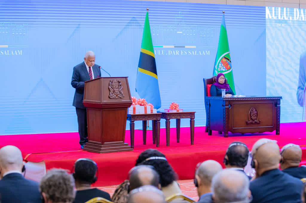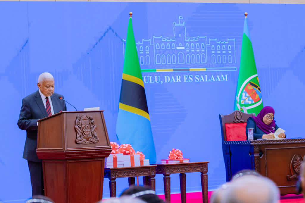 Mwenyekiti wa Tume ya Rais ya Kuchunguza Matukio ya Uvunjifu wa Amani wakati na baada ya Uchaguzi Mkuu wa Oktoba, 2025, Jaji Mkuu Mstaafu Mhe. Mohamed Chande Othman akisoma Muhtasari wa Ripoti ya Tume hiyo, Ikulu Jijini Dar es Salaam, tarehe 23, Aprili, 2026.