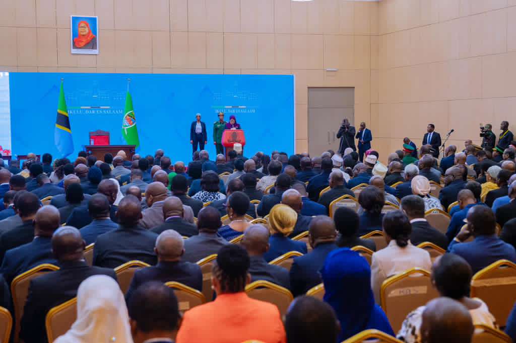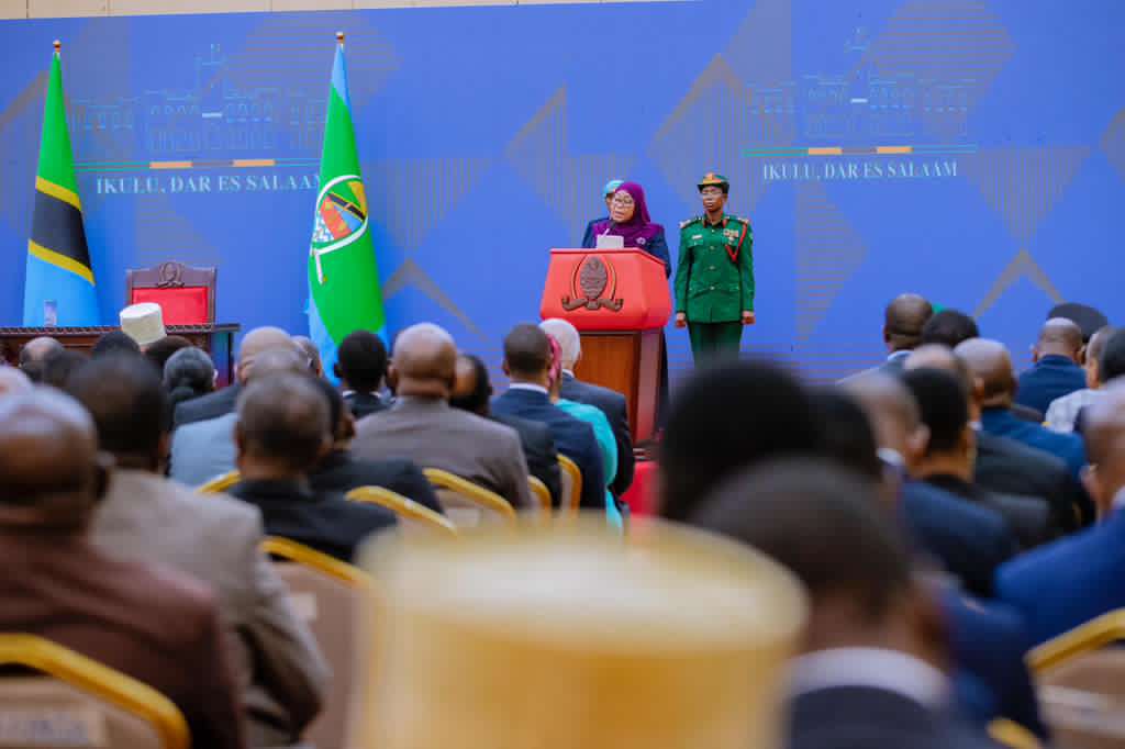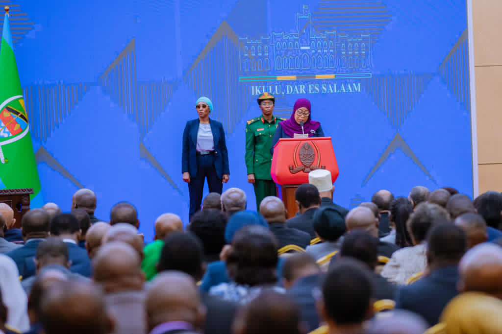 Rais wa Jamhuri ya Muungano wa Tanzania, Mhe. Dkt. Samia Suluhu Hassan akizungumza na viongozi mbalimbali mara baada ya kupokea Ripoti ya Tume ya Rais ya Kuchunguza Matukio ya Uvunjifu wa Amani wakati na baada ya Uchaguzi Mkuu wa Oktoba, 2025, Ikulu Jijini Dar es Salaam, tarehe 23 Aprili, 2026.