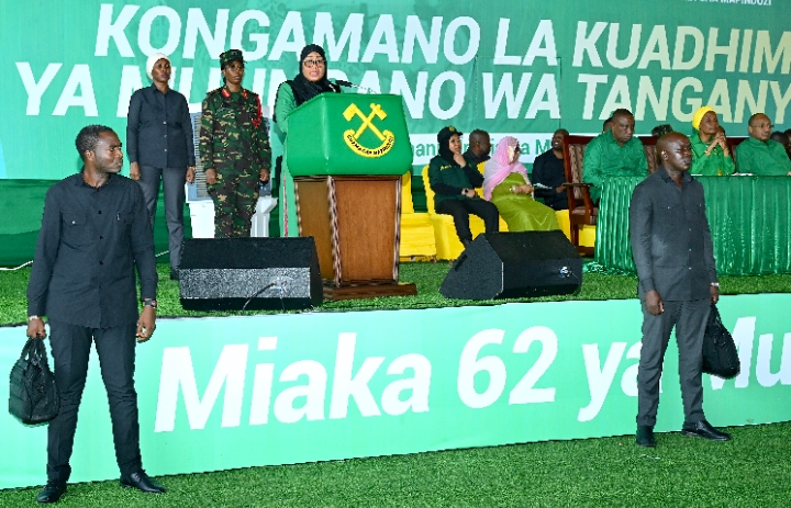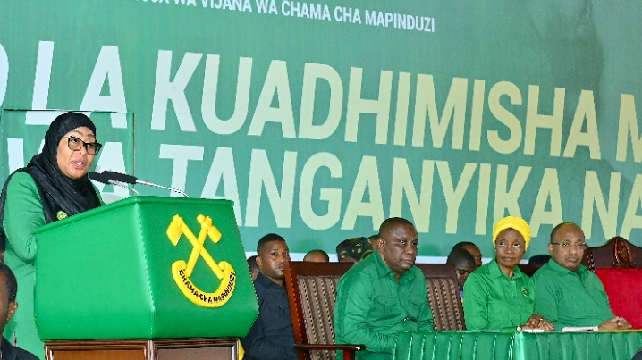 Mwenyekiti wa Chama cha Mapinduzi (CCM) Taifa na Rais wa Jamhuri ya Muungano wa Tanzania, Mhe. Dkt. Samia Suluhu Hassan akizungumza kwenye Kongamano la Muungano lililofanyika katika Chuo cha Umoja wa Vijana wa Chama cha Mapinduzi (CCM) Tunguu, Zanzibar tarehe 26 Aprili, 2026.