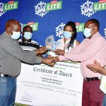 Rais wa Jamhuri ya Muungano wa Tanzania Mheshimiwa Samia Suluhu Hassan akimkabidhi mfano wa funguo ya Nyumba Rais Mstaafu wa Awamu ya Nne Dkt. Jakaya Mrisho Kikwete kama ishara ya kumkabidhi Nyumba mpya ya kuishi iliyopo Wilayani Kinondoni Mkoani Dar es Salaam ambayo amejengewa na Serikali kwa mujibu wa sheria leo tarehe 09 Mei, 2021.