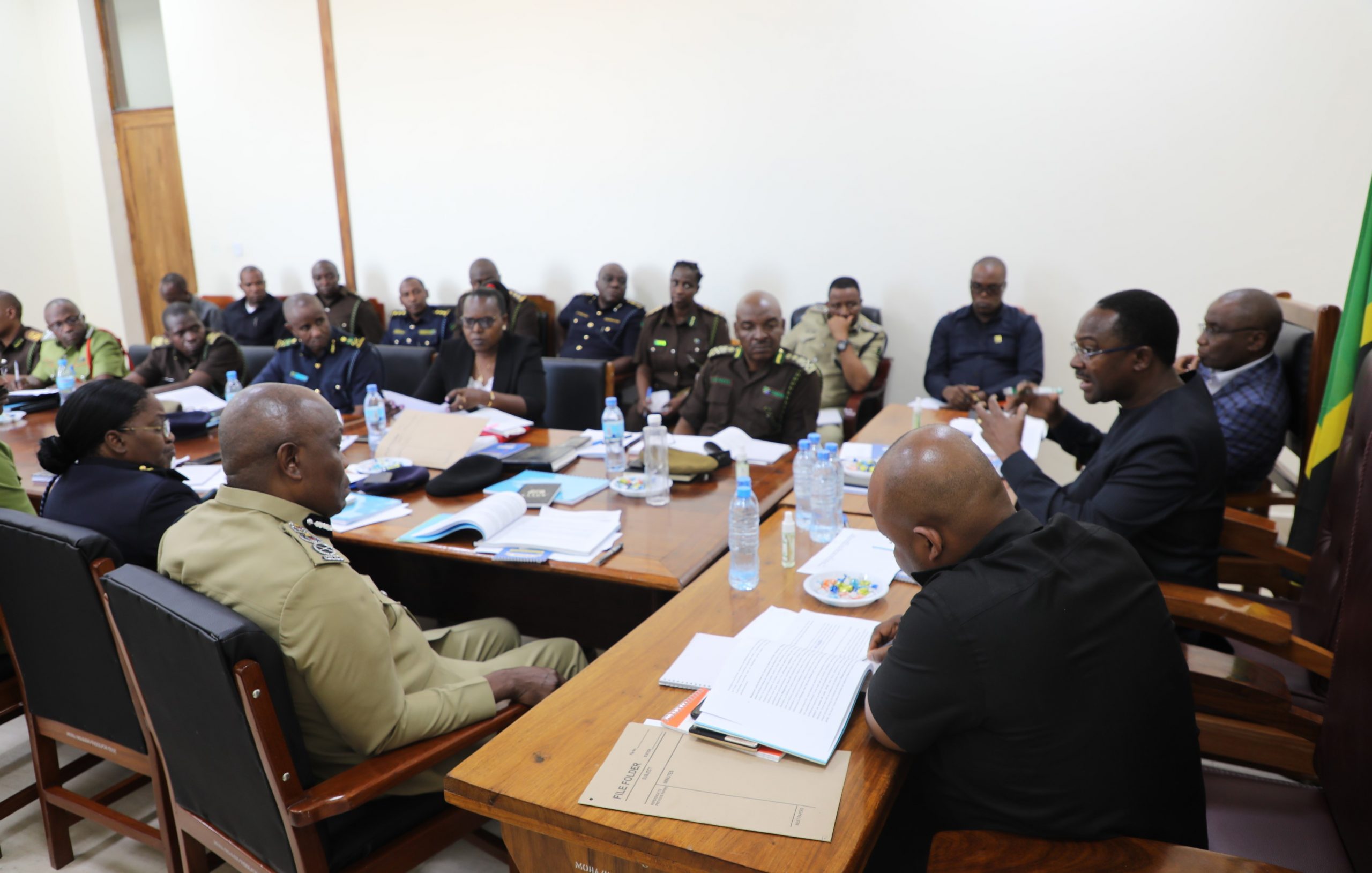 Waziri wa Mambo ya Ndani ya Nchi,George Simbachawene akiongoza Kikao cha Utendaji wa wizara ambacho kimehudhuriwa na Wakuu wa Vyombo vya Ulinzi na Usalama vilivyopo chini ya wizara hiyo,leo jijini Dodoma.Picha na Wizara ya Mambo ya Ndani ya Nchi