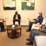 Waziri wa Mambo ya Nje na Ushirikiano wa Afrika Mashariki, Balozi Liberata Mulamula akimsikiliza Balozi wa Korea ya Kusini aliyemaliza muda wake wa uwakilishi hapa nchini Mhe. Tae-ick Cho wakati alipokwenda kumuaga Mhe. Waziri katika Ofisi Ndogo za Wizara Jijini Dar es Salaam