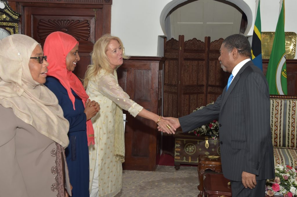 Rais wa Zanzibar na Mwenyekiti wa Baraza la Mapinduzi Dk.Ali Mohamed Shein (kulia) akizungumza na Mwakilishi wa UNFPA Nchini Tanzania Ms.Jacqueline Mahon (katikati)alipofika Ikulu Mjini Zanzibar leo kwa ajili ya kumsalimia Rais akiwa na ujumbe aliofuatana nao [Picha na Ikulu.] 20/08/2019.