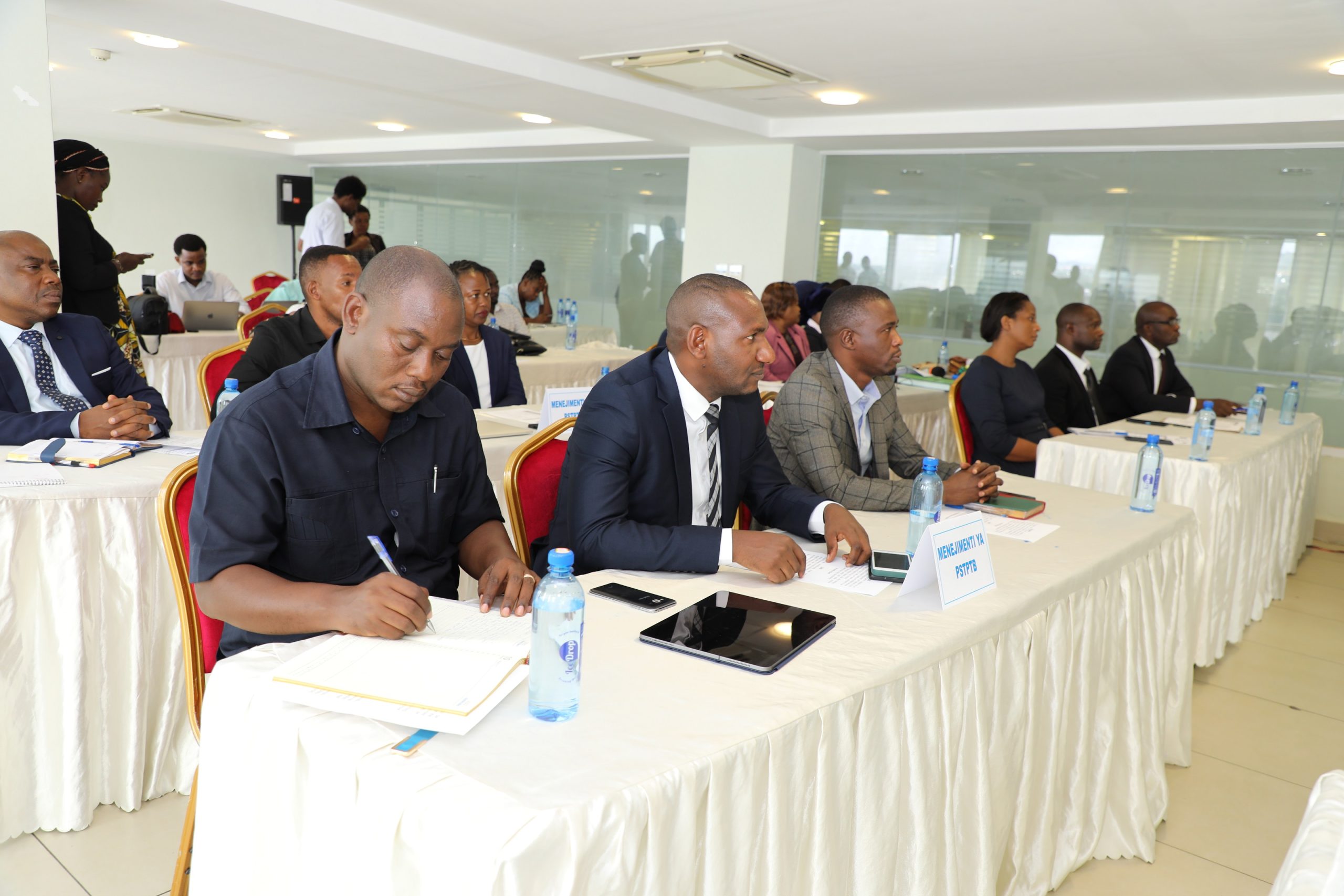 Menejimenti ya Bodi ya Wataalamu wa Ununuzi na Ugavi (PSPTB), na wageni waalikwa wakifuatilia shughuli ya uzinduzi wa Bodi ya Wakurugenzi ya PSPTB, iliyozinduliwa na Naibu Katibu Mkuu Wizara ya Fedha na Mipango, Bw. Lawrance Mafuru (hayumo pichani), jijini Dodoma.