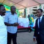 Mkurugenzi mstaafu wa Makumbusho na Nyumba ya Utamaduni Paul Msemwa (kulia mwenye shati jeupe)akizungumza jambo na Mkurugenzi wa Makumbusho na Nyumba ya Utamaduni Archiles Bufure (kushoto)