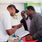 Mufti Mkuu wa Zanzibar Sheikh Saleh Omar Kabi (mwenye koti)akiuliza maswali wakati alipotembelea Banda la PBZ Ikhilas katika hafla ya ufunguzi wa Maonesho ya Kiislamu katika Tamasha la Maulid Mnara wa kumbukumbu Kisonge Jijini Zanzibar.