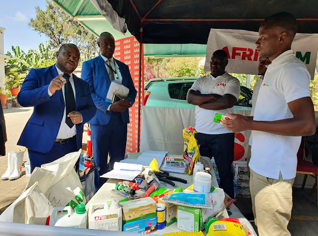 Kaimu Katibu Mkuu Wizara ya Mifugo na Uvuvi (Mifugo) Dkt. Charles Mhina (kushoto) akielezea umuhimu wa hereni za kielektroniki alipofika kwenye banda la Kampuni ya pembejeo za Mifugo ya “Afrifarm” muda mfupi kabla ya kufungua kongamano la Chama cha Wanataaluma wa sayansi ya Uzalishaji wa Mifugo na Uvuvi (TSAP) leo (26.10.2022) jijini Arusha. Kulia ni Afisa Mauzo wa kampuni hiyo Bw. Emanuel Senge.