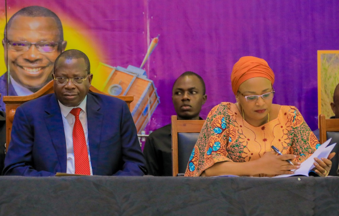 Makamu wa Rais wa Jamhuri ya Muungano wa Tanzania Dkt. Philip Mpango akifuatilia taarifa ya Bw. Habibu Mchange Mwenyekiti wa Kituo Cha Wanahabari Watetezi wa Rasilimali na taarifa MECIRA kwenye Kongamano la Wahariri na Wadau wa Uhifadhi, Mazingira na utunzaji wa vyanzo vya maji linalofabyika kwenye ukumbi wa Masiti Gangilonga Mkoani Iringa Leo Disemba 19,2022 kulia ni Mkuu wa mkoa wa Iringa Bi. Halima Dendego.