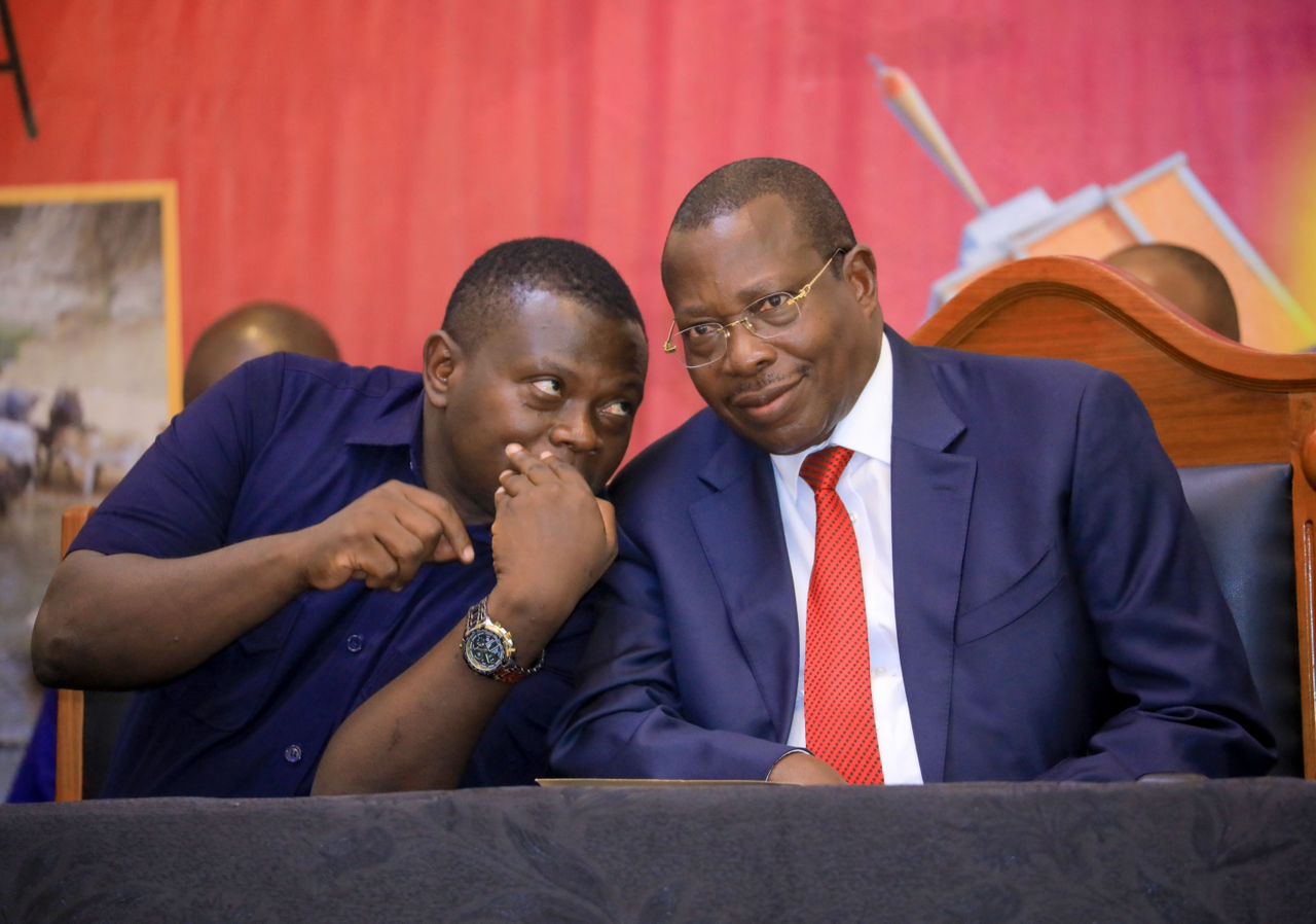 Makamu wa Rais wa Jamhuri ya Muungano wa Tanzania Dkt. Philip Mpango akiteta jambo na Bw. Habibu Mchange Mwenyekiti wa Kituo Cha Wanahabari Watetezi wa Rasilimali na taarifa MECIRA kwenye Kongamano la Wahariri na Wadau wa Uhifadhi, Mazingira na utunzaji wa vyanzo vya maji linalofabyika kwenye ukumbi wa Masiti Gangilonga Mkoani Iringa Leo Disemba 19,2022.