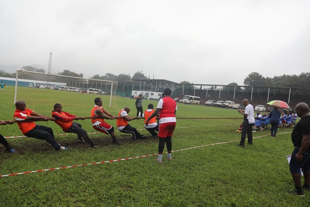 Timu ya Mawasiliano ikiwavuta timu ya Wizara ya Afya wakati wa mashindano ya