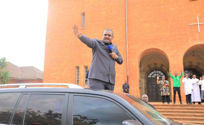 Naibu Waziri, Ofisi ya Rais-TAMISEMI Mhe. Deogratius Ndejembi akizungumza na wananchi wa Peramiho (hawapo pichani), mara baada ya Makamu wa Rais wa Jamhuri ya Muungano wa Tanzania Mhe. Dkt Philip Isdor Mpango kumpatia fursa ya kuzungumza na wanachi wa eneo hilo.
