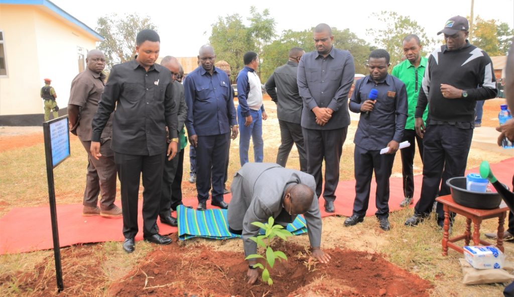 Makamu wa Rais wa Jamhuri ya Muungano wa Tanzania Mhe. Dkt Philip Isdor Mpango akipanda mti katika kituo cha afya Lilambo mara baada ya kukikagua na kukizindua kituo hicho, kilichojengwa katika Kijiji cha Kigonsera.