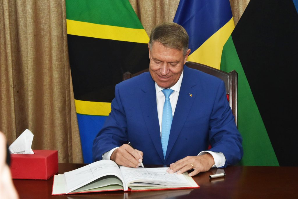 Rais wa Romania Mhe.Klaus Iohannis akitia saini kitabu cha wageni leo alipofika Ikulu Jijini Zanzibar kabla ya mazungumzo yao na mwenyeji wake Rais wa Zanzibar na Mwenyekiti wa Baraza la Mapinduzi Mhe.Dk.Hussein Ali Mwinyi (hayupo pichani) Rais Klaus Iohannis yupo nchini kwa ziara ya siku nne nchini.[Picha na Ikulu