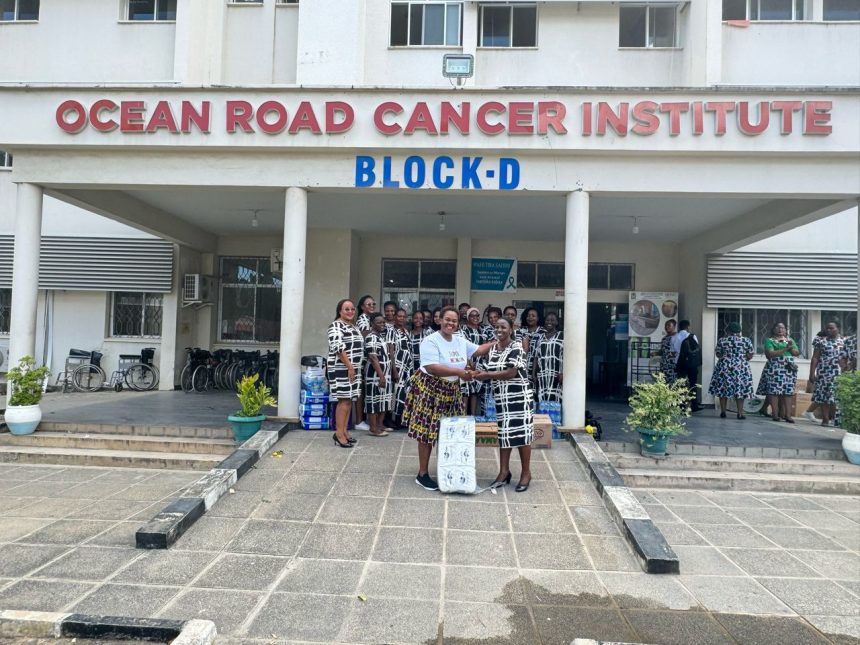 Kulia ni Priscila Ambelile – Afisa Utumishi Mkuu (WHI) akikabidhi Dawa na vifaa mbalimbali kwa Stella Mwakilembe Afisa Ustawi wa Jamii Taasisi ya Saratani ya Ocean Road ikiwemo uchangiaji wa Damu na mahitaji mengine muhimu kwa wagonjwa wa saratani wanaondelea kupata huduma ya matibabu katika taasisi hiyo.