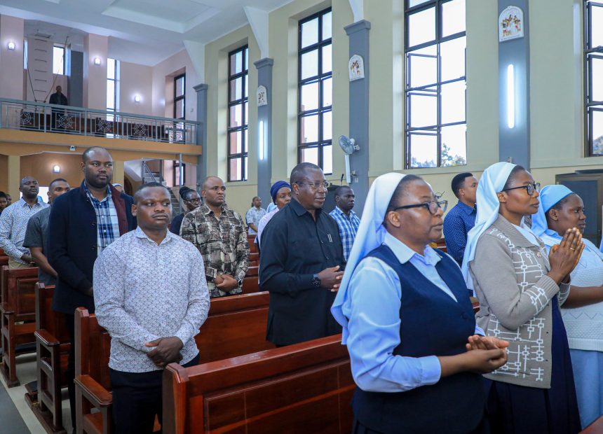 Makamu wa Rais wa Jamhuri ya Muungano wa Tanzania Mhe. Dkt. Philip Mpango na Mkewe Mama Mbonimpaye Mpango wakishiriki Ibada ya Asubuhi ya kawaida katika Kanisa Katoliki Parokia ya Bikira Maria Mshindaji Jimbo Kuu Katoliki Kigoma tarehe 13 Julai 2024.