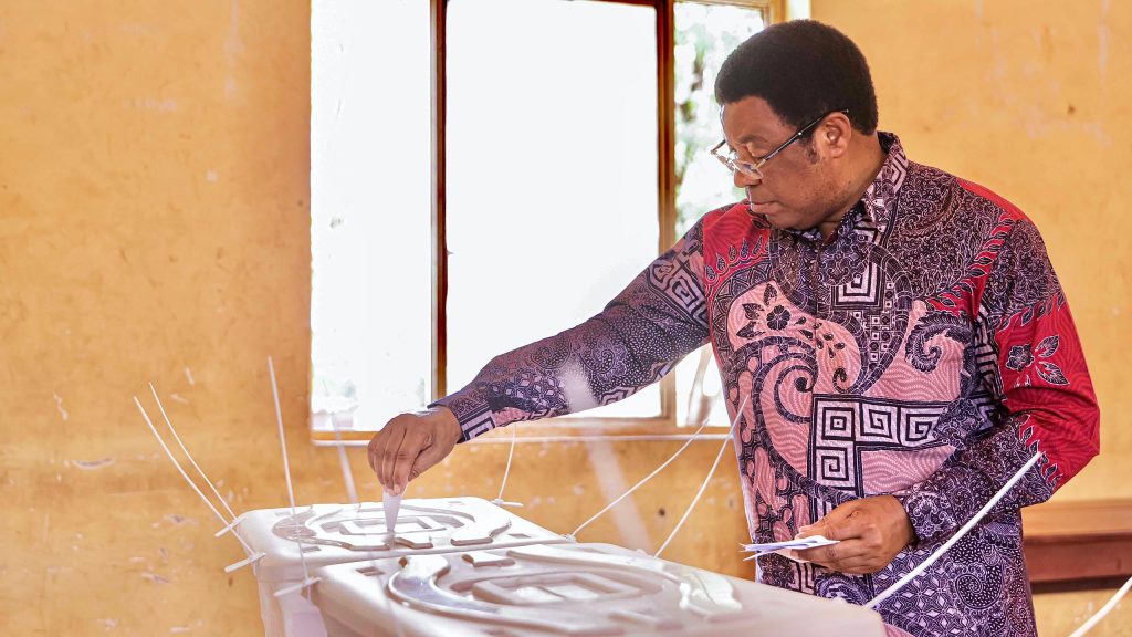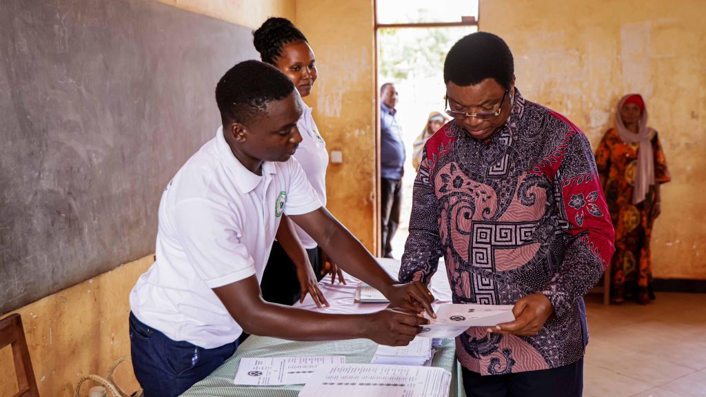 Waziri Mkuu Kassim Majaliwa akiweka Kura yake katika sanduka kuchagua viongozi wa Serikali za Mitaa, Vijiji na Vitongoji kwenye kituo cha Shule ya Msingi Nandagala, Ruangwa Mkoani Lindi, Novemba 27, 2024. (Picha na Ofisi ya Waziri Mkuu)