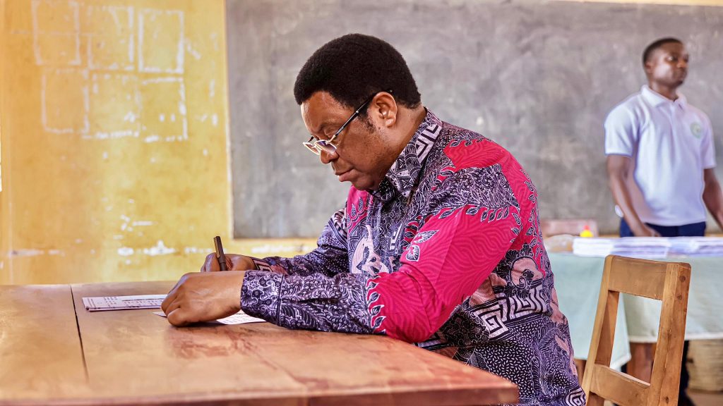 Waziri Mkuu Kassim Majaliwa akipiga Kura ya kuchagua viongozi wa Serikali za Mitaa, Vijiji na Vitongoji kwenye kituo cha Shule ya Msingi Nandagala, Ruangwa Mkoani Lindi, Novemba 27, 2024. (Picha na Ofisi ya Waziri Mkuu)