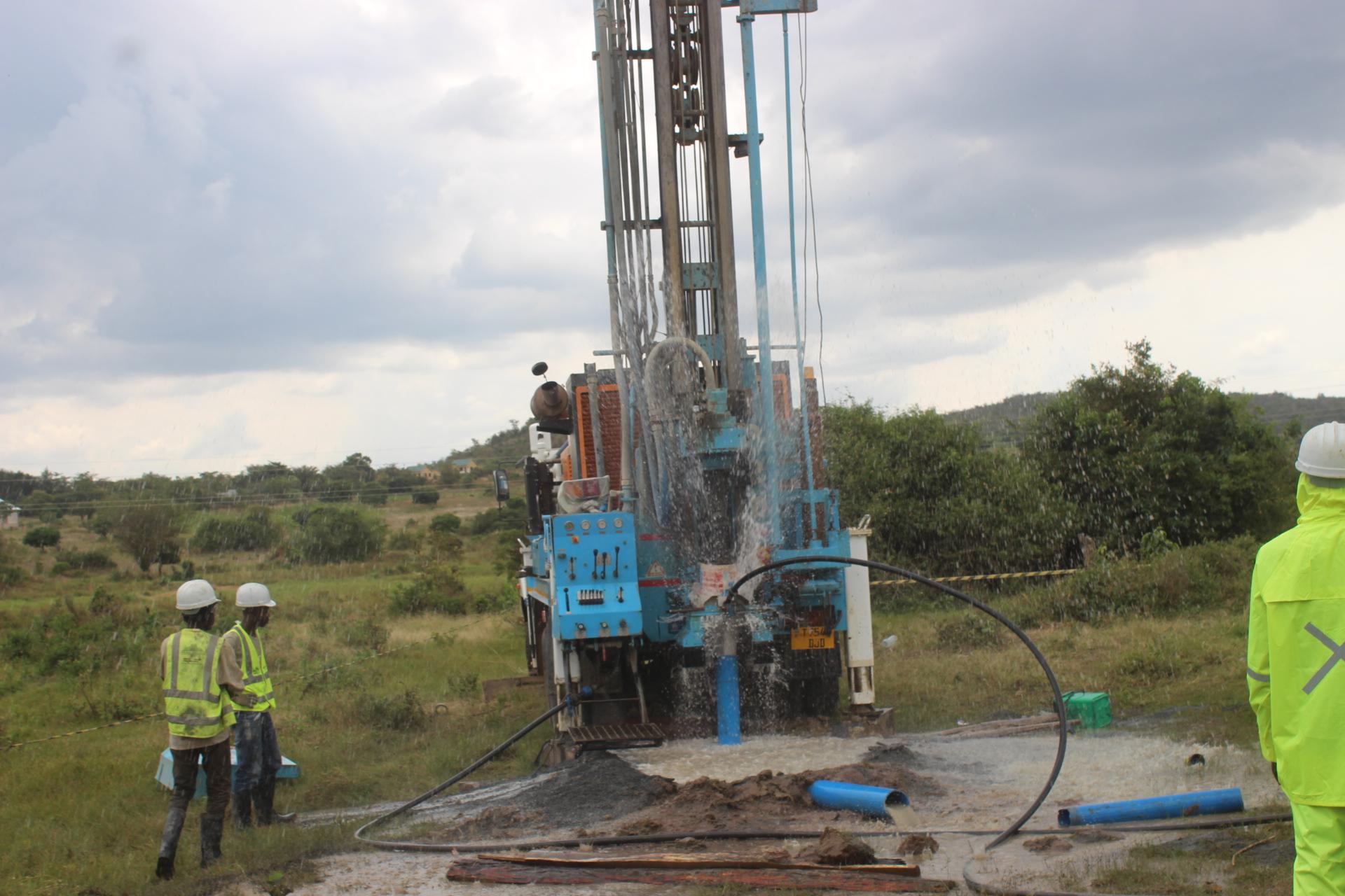 Uchimbaji wa kisima kwenye shule ya Sekondari ya Ilemela Wilayani Chato ukiwa katika hatua za mwisho kama ilivyoonekana wakati wa ziara ya Katibu Mkuu wa Wizara ya Maji, Profesa Kitila Mkumbo.