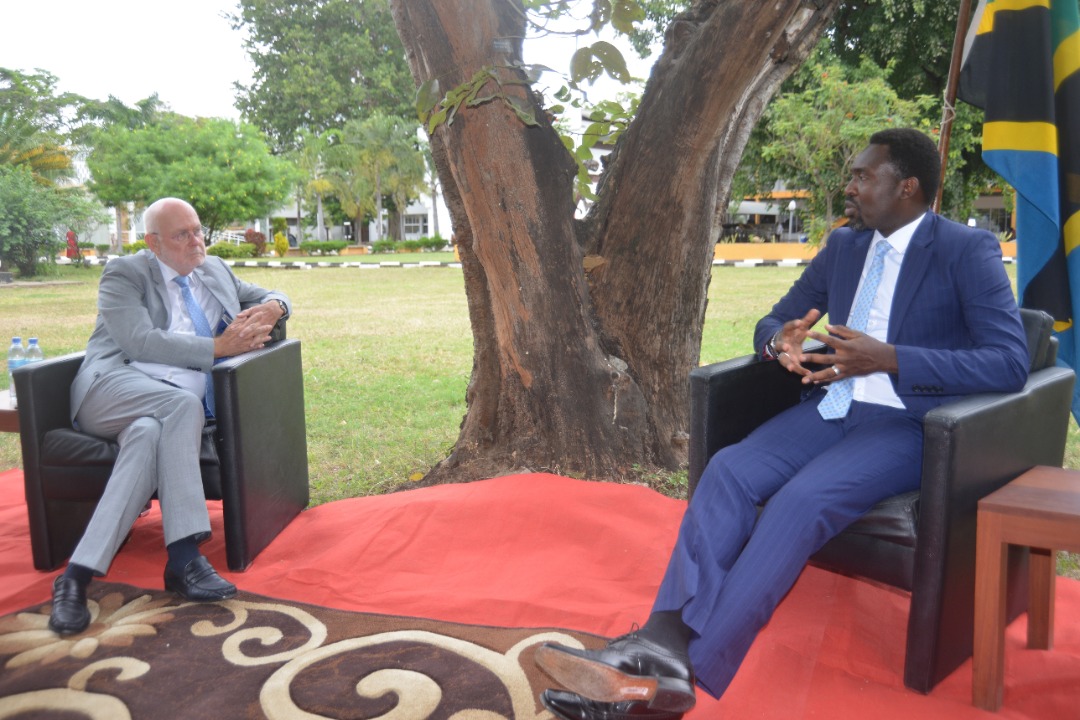 Waziri wa Maliasili na Utalii Dkt. Hamisi Kigwangalla (kulia) akizungumza na Balozi wa Netherland nchini Tanzania Jeroen Verheul (kushoto) leo jijini Dar es salaam kuhusu utayari wa Tanzania kupokea watalii kutoka nchi mbalimbali ikiwemo Netherland wakati huu wa janga la Corona.