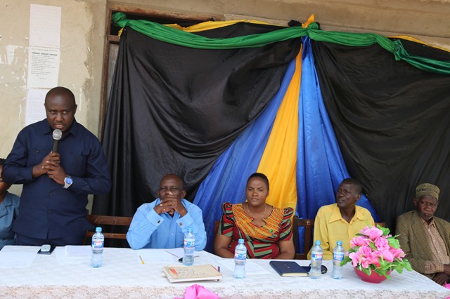Mkuu wa Wilaya ya Uyui mkoani Tabora mhe. Gift Msuya akifungua mafunzo kwa wakulima wa Kata ya Miyenze Wilayani humo hivi karibuni, mafunzo hayo yakuwajengea uwezo wakulima waliorasimisha mashamba yao Wilayani humo na kupatiwa hati za haki milki za kimila za kumilki ardhi yamefanyika katika Kata za Miyenze na Lutende.