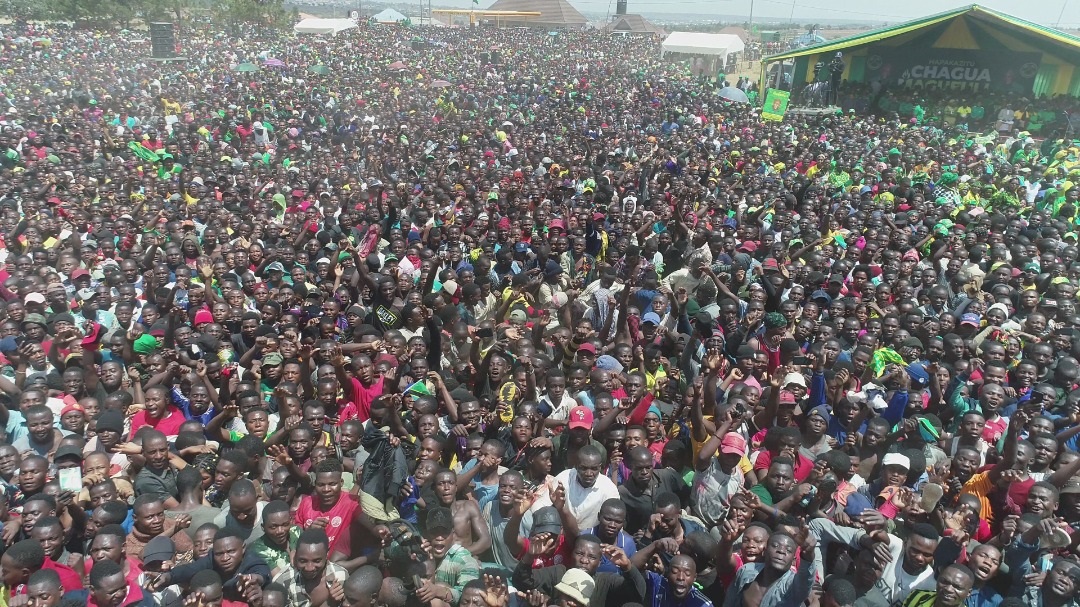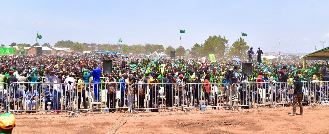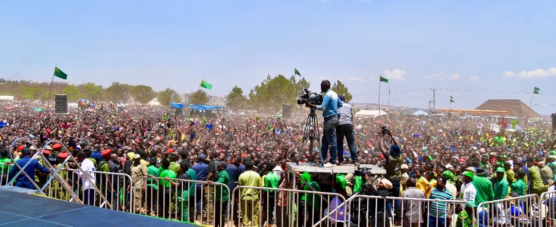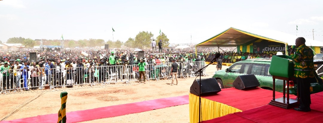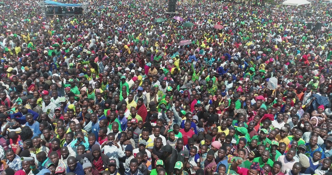 Wananchi wa mji wa Tunduma mkoani Songwe wakimsikiliza Mgombea Urais kupitia Chama cha Mapinduzi CCM Rais Mheshimiwa Dkt. John Pombe Magufuli