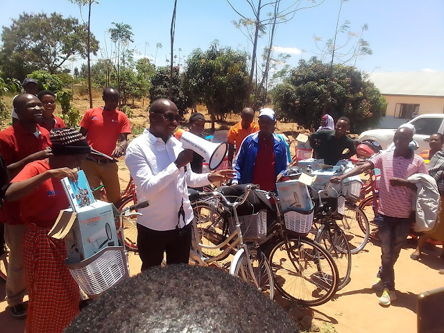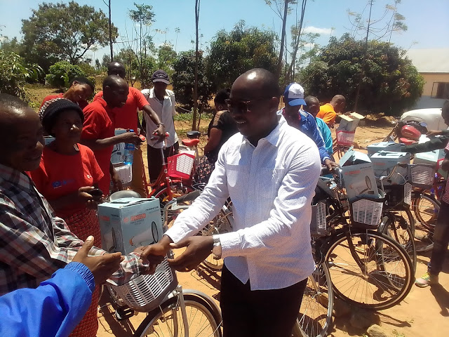akikabidhi usafiri wa Baiskeli na Vipaza sauti kwa Wahudumu wa Afya ngazi ya