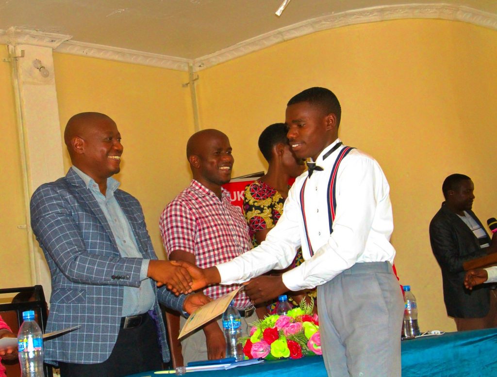 Mkuu wa Taasisi ya Kuzuia na Kupambana na Rushwa(TAKUKURU) Dodoma, Sosthenes Kibwengo,ambaye alikuwa mgeni rasmi wakati wa mahafali ya wahitimu wa kidato cha nne wanachama wa klabu za wapinga Rushwa kwa shule nane zilizopo jijini Dodoma akigawa Vyeti kwa wahitimu hao.