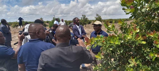 wa ‘korosho karanga’ na ‘korosho bibo’ uliotokana mbegu zinazozalishwa na TARI kwenye ‘Block Farming’ za Masigati alipotembelea shamba hilo hivi karibuni.