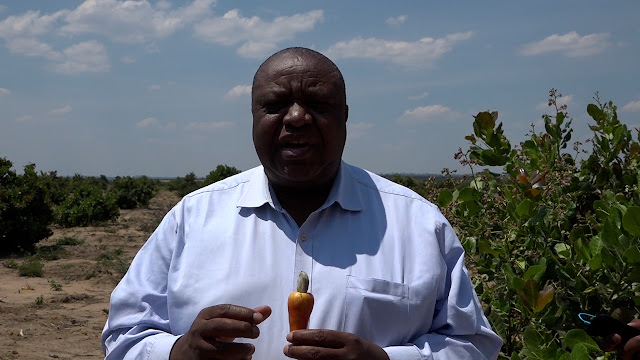 Kilimo Tanzania (TARI) Dkt. Yohana Budeba akiangalia moja ya mti wa mkorosho