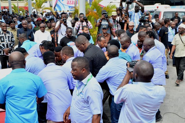 Viongozi mbalimbali wa serikali, Vyama vya Siasa Mashirika na Taasisi mbalimbali wakiwasili katika ofisi za Azam Media tayari kwa kushiriki kuaga miili ya waliokuwa wafanyakazi wa kituo hicho waliofariki kwa ajali mkoani Singida jana.