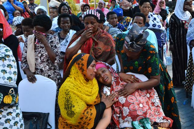 Baadhi ya waombolezaji mbalimbali wakilia kwa uchungu baada ya miili hiyo kuwasili katika ofisi za Azam Media Tabata Relini leo.