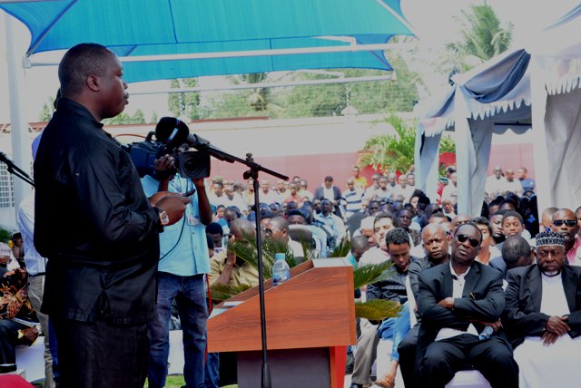 Mkurugenzi wa Azam Media Tido Mhando akizungumza wakati wa kutoa heshima za mwisho kwa waliokuwa wafanyakazi wa Azam Media waliofariki jana kwa ajali ya gari mkoani Singida.