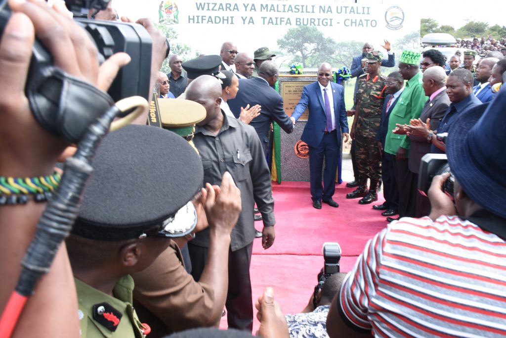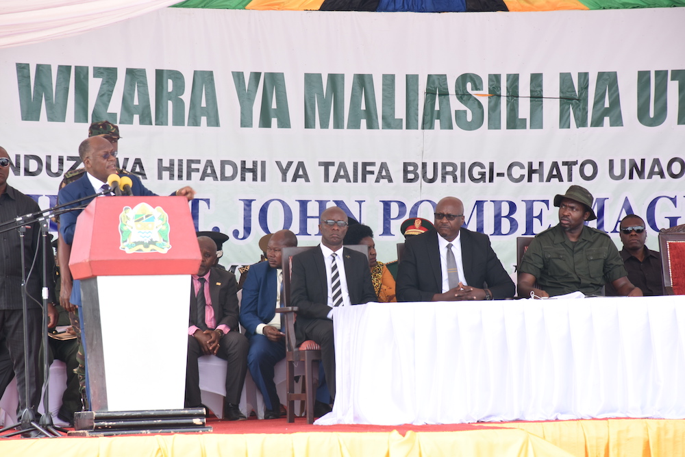 -Rais wa Jamhuri ya Muungano wa Tanzania Dkt. John Pombe Magufuli akiongea wakati wa Uzinduzi wa Hifadhi ya Taifa ya Burigi-Chato leo Mkoani Geita ambapo alieleza mipango ya Serikali ya kuendelea kukuza na Kuendeleza Sekta ya Utalii nichini