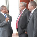 Rais wa Jamhuri ya Muungano wa Tanzania Dkt. John Pombe Magufuli akisalimiana na Viongozi mbalimbali wa Serikali baada ya kuzindua Hifadhi ya Taifa ya Burigi-Chato leo Mkoani Geita.