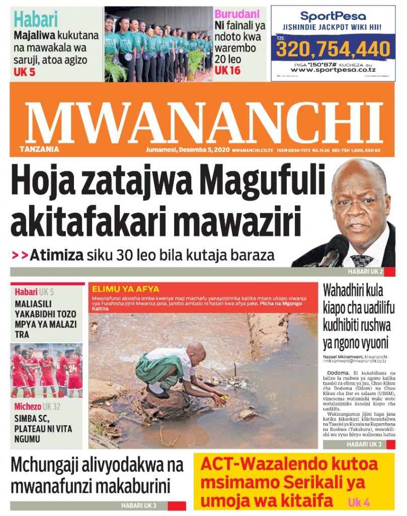 PITIA VICHWA VYA HABARI KATIKA MAGAZETI YA LEO DECEMBER 5,2020