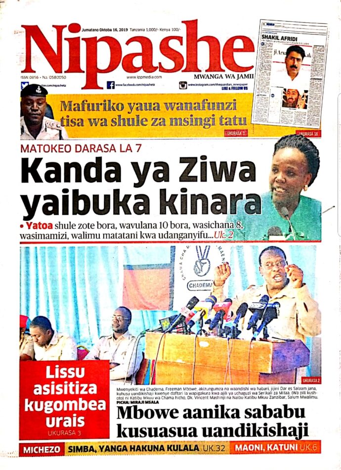 PITIA VICHWA VYA HABARI KATIKA MAGAZETI YA LEO JUMATANO OKTOBA 16,2019